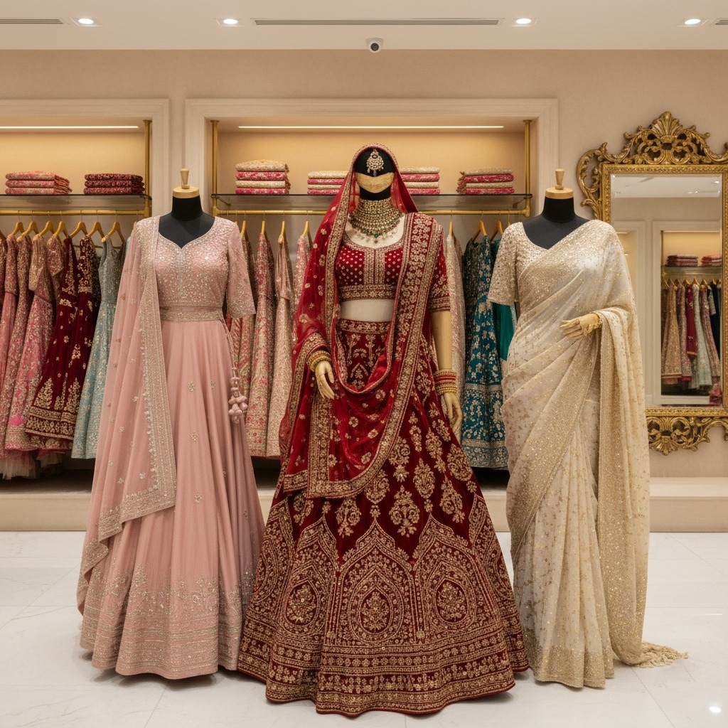 Exclusive bridal lehengas & wedding wear designed for grand celebrations and timeless memories.